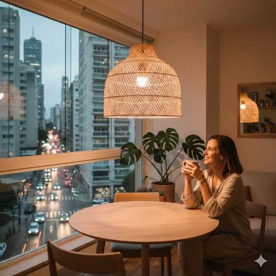 O Poder do Rattan: Como Transformar Apartamentos Compactos com Pendentes de Vime