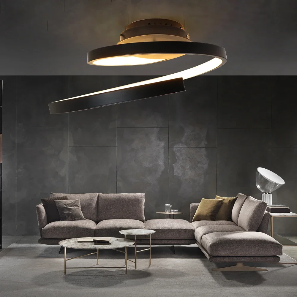 Luminária Sobrepor Espiral Minimalista Alumínio Preto ou Branco