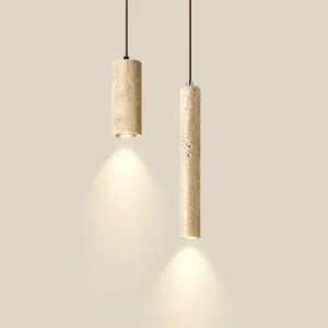 Estilo Japandi: Utilize pendentes de concreto fosco sobre mesas de jantar para um visual limpo e funcional.