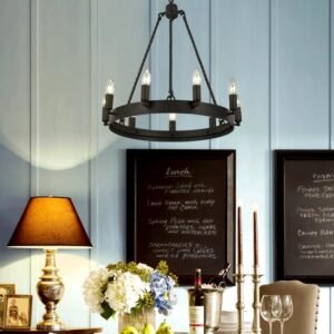 Lustre de ferro forjado: Modelos são feitos com metal forjado e possuem uma aparência robusta e rústica. Você pode instalar em espaços como cozinhas, salas de jantar e escritórios.