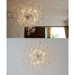 Lustre de vidro: Este modelo é feito com vidro colorido ou transparente e tem uma aparência sofisticada e moderna.