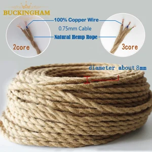 Cabo Cânhamo Vintage Trançada Cabo Flexível, Fio Elétrico 250V