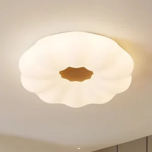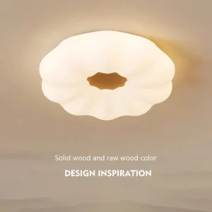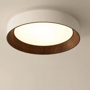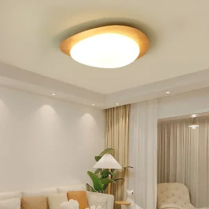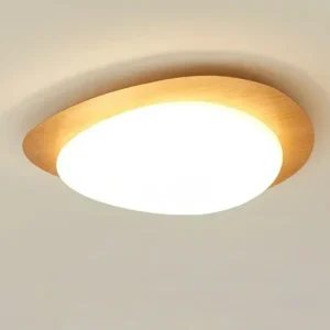 Luminária Sobrepor Circulo Irregular Base Acabamento Madeira