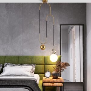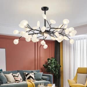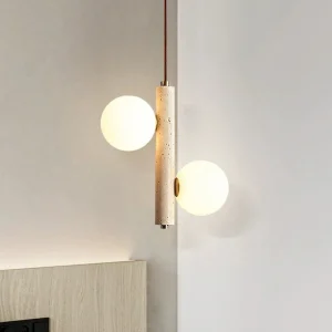 Pendente Com Estrutura Acabamento Pedra Com Bolas De Vidro
