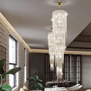 Lustre De Cristal Grande Para Escadas Com Pingentes de Cristais K9
