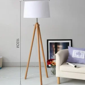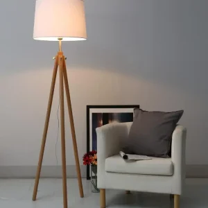 Luminária De Chão Tripé De Madeira Maciça e Cúpula Tecido Branca