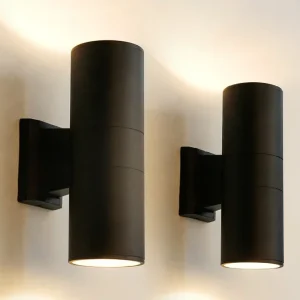 Arandela Tubo Alumínio Preto Para Jardins e Fachadas IP65