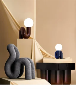 Abajur Art Pop Tubo Em Curva Com Bola Branca Leitosa