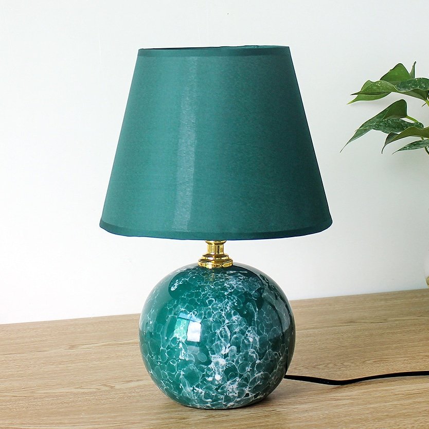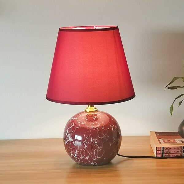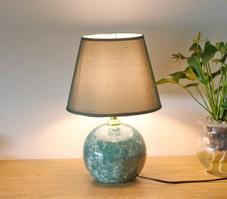 Luminária de mesa abajur de bola de cerâmica esmaltada e cúpula cônica de tecido liso
