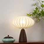 Abajur Base Preta e Cúpula Tecido Branco Design Japonês