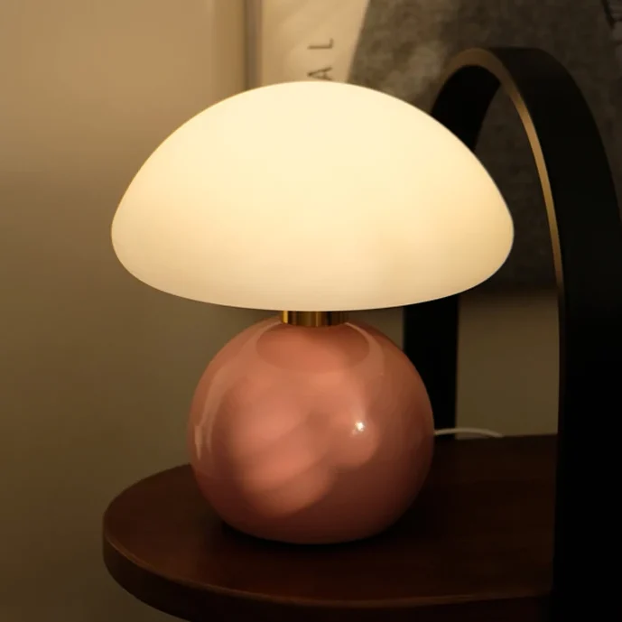 Abajur De Cerâmica e Cúpula Vidro Branco Leitoso