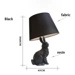 Abajur Escultura De Coelho Branco ou Preto Com Cúpula Tecido Liso