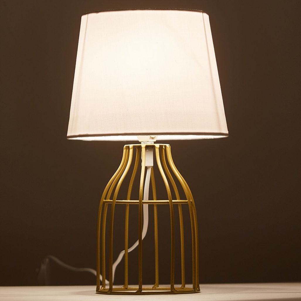 Abajur gaiola aramado cúpula tecido