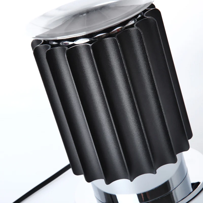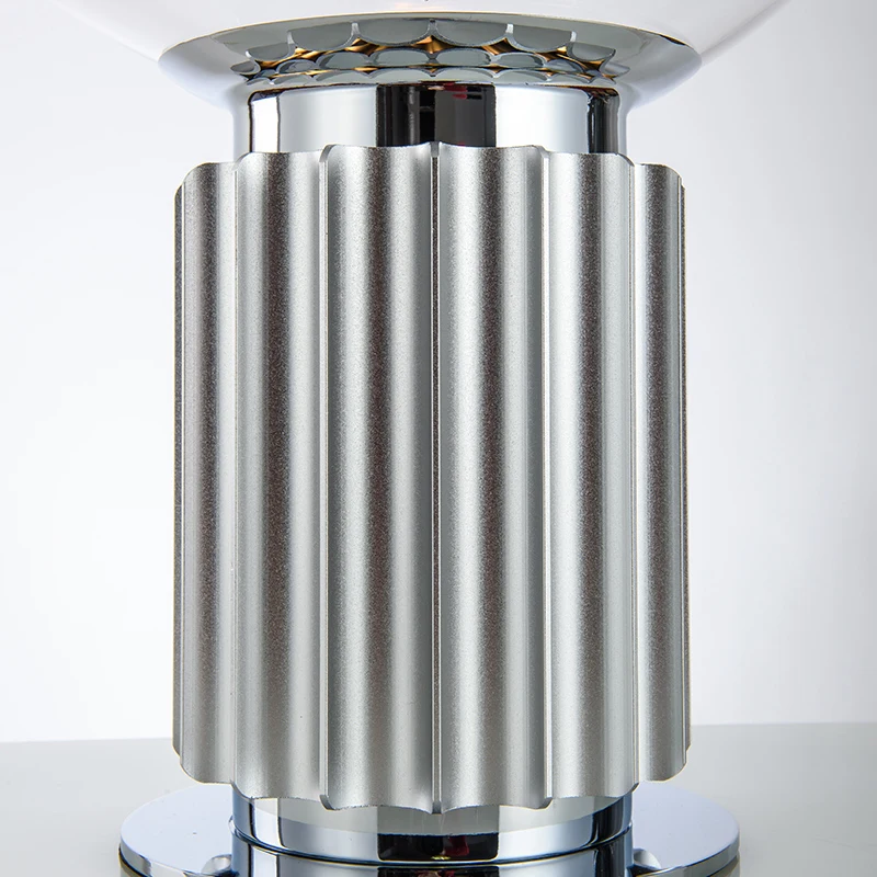 - Materiais industriais: A base geralmente é feita de alumínio anodizado ou aço polido, com acabamento fosco ou escovado, que é característico do estilo industrial. A cúpula é de vidro, o que contrasta com a robustez da base, dando leveza ao design.