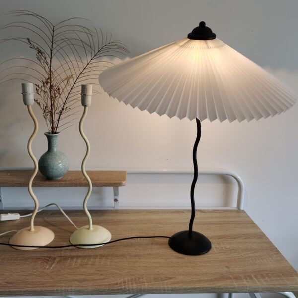 Em até 6x de R$179,42 sem juros À vistaR$968,88no PixEconomize R$107,65 no PixÀ vistaR$1.001,17no Boleto bancário Abajur de erro forjado orgânico (com movimento), e cúpula em formato “chapéu aberto” e acabamento plissado. Abajur de design vintage.