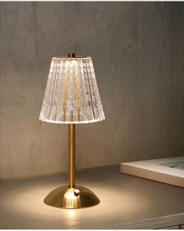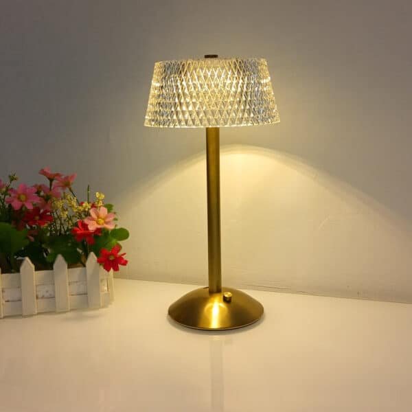 Abajur metal cor ouro e luz de toque