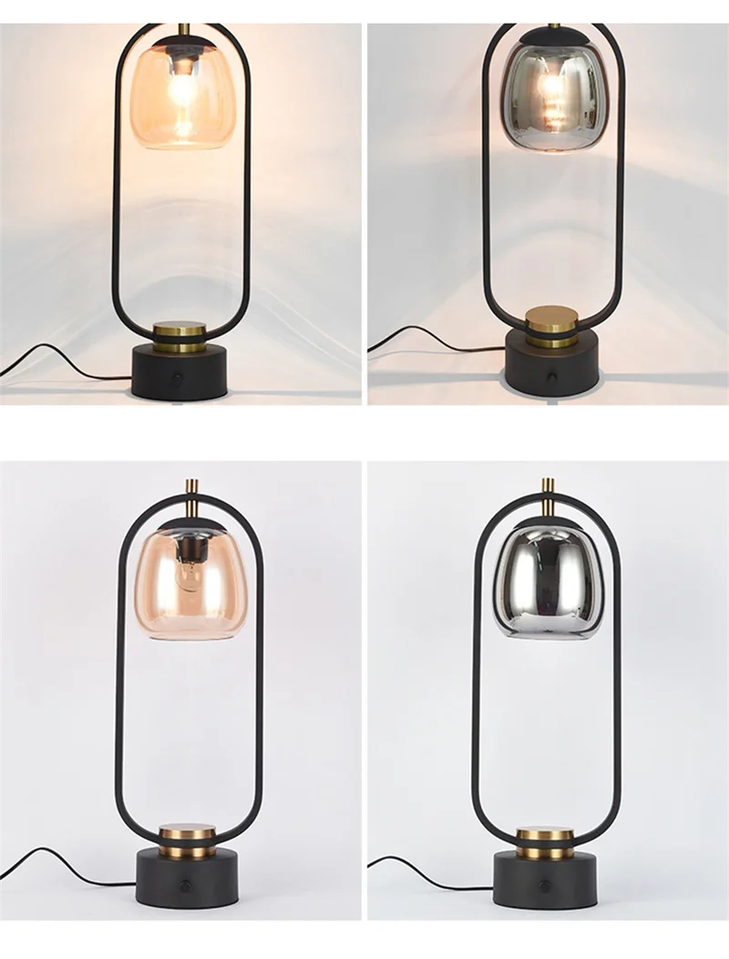 Abajur Moderno Alumínio Preto Cúpula De Vidro