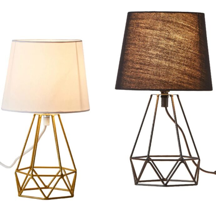 Abajur diamante aramado/gaiola e cúpula tecido cônica