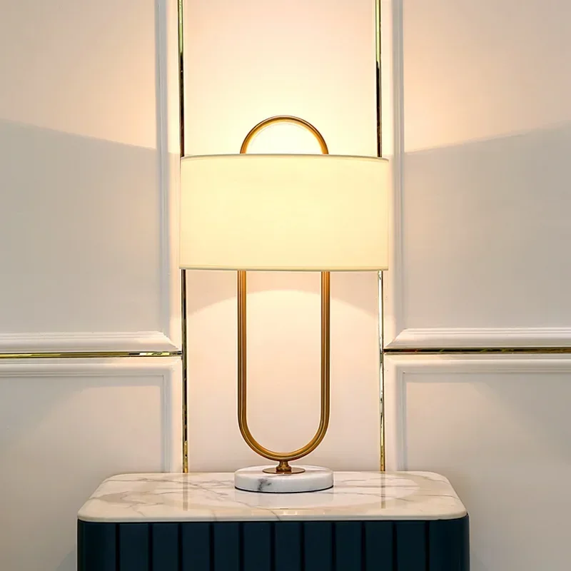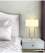 Abajur Moderno Aro Dourado e Cúpula Tecido Branco