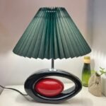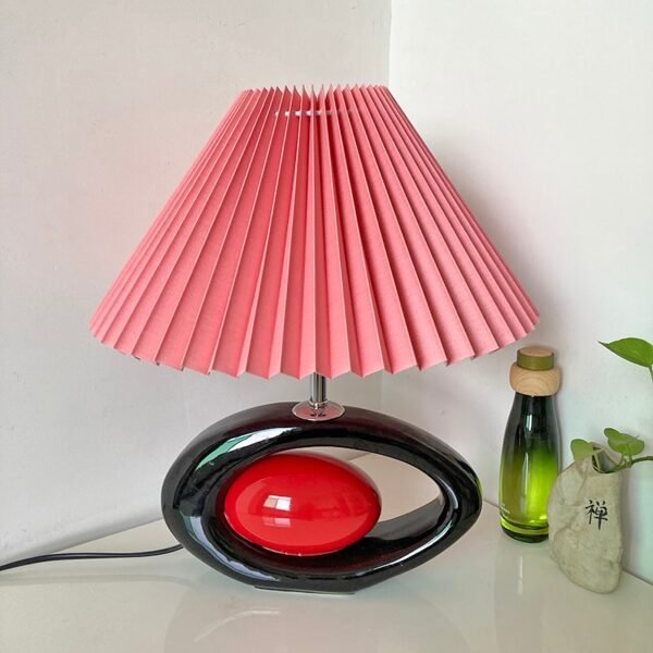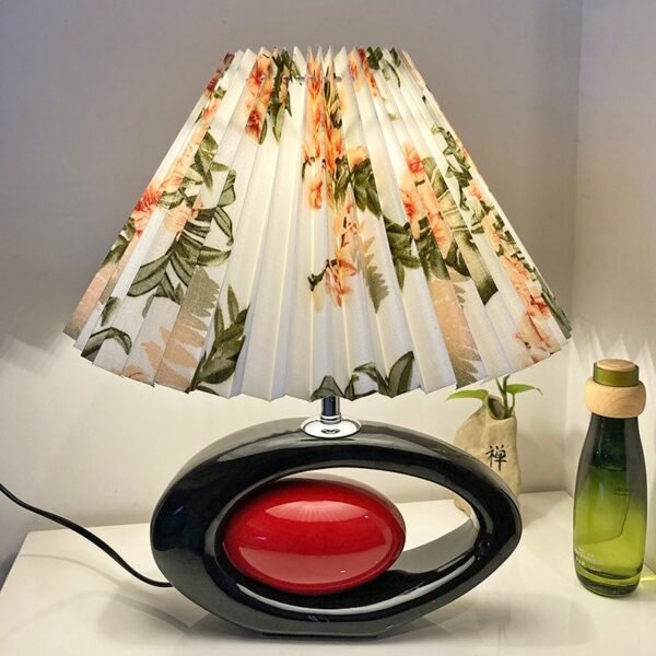 Abajur oriental de cerâmica e cúpula plissada cônica