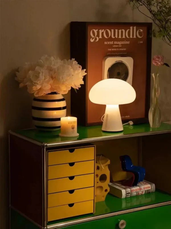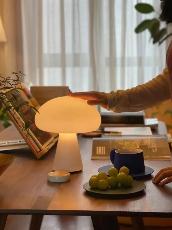 Abajur Sem Fio Funji Cogumelo Branco Fosco