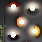 Luminária de parede, arandela alumínio colorido 1/2 lua com bola/esfera/globo de vidro branco leitoso