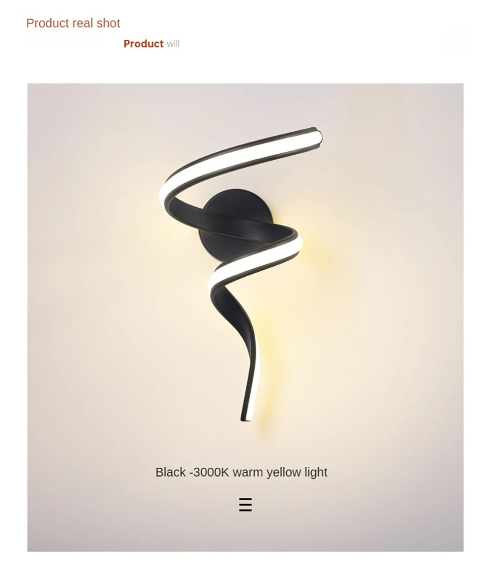 Arandela Alumínio Espiral Luz LED