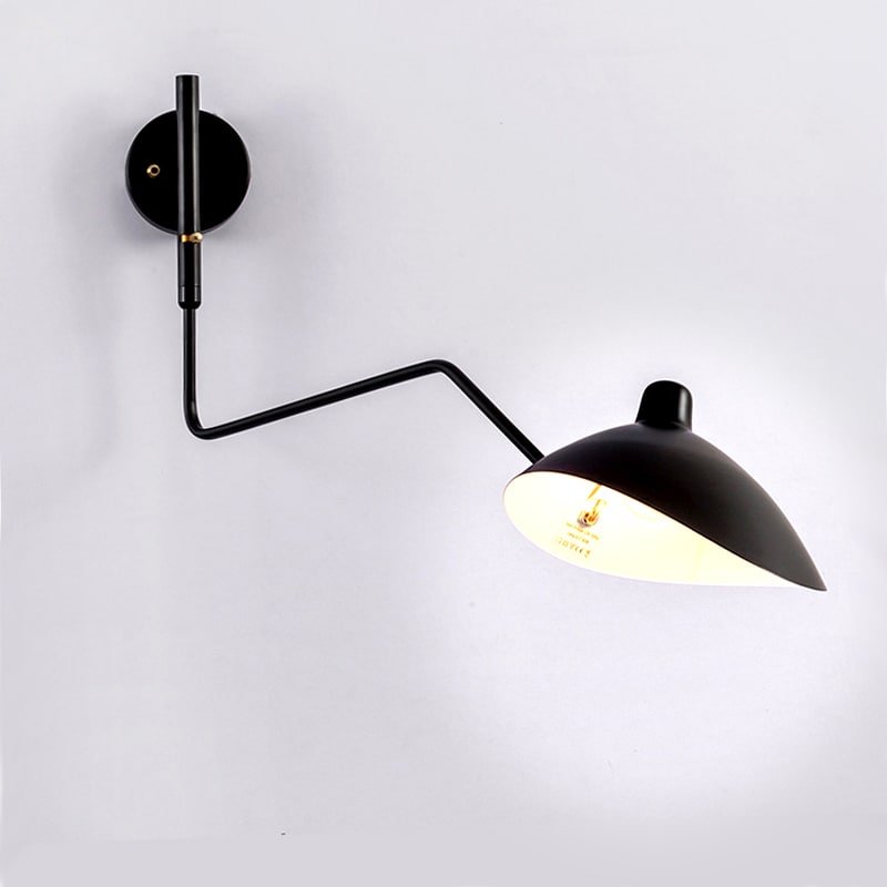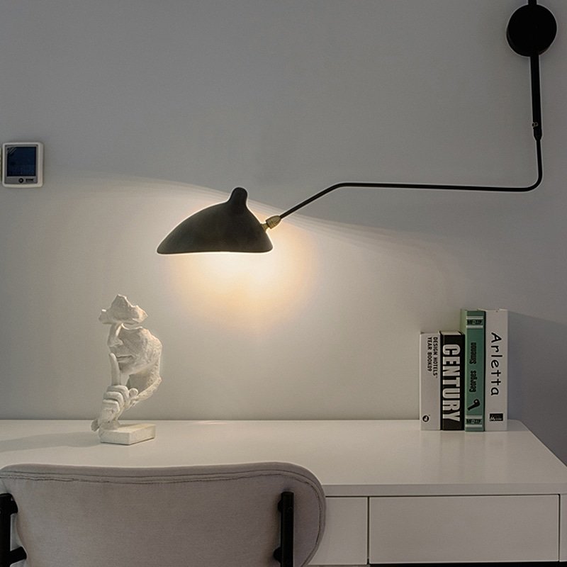 Antes de mais nada, a arandela replica Serge Mouille é feita com materiais de qualidade e é uma réplica fiel do design original de Mouille. Ao mesmo tempo, ela apresenta um braço curvo e uma sombra em forma de disco, ambas feitas de metal pintado em preto fosco, que criam uma aparência elegante e dramática. Porquanto, a sombra ajustada em diferentes direções para direcionar a luz onde for necessária, o que a torna uma ótima opção para iluminar paredes, quadros ou objetos decorativos por exemplo.