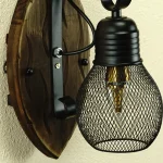 Arandela Base Madeira e Cúpula Aramada Preta