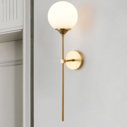 Arandela, luminária de parede, dourado e bola/esfera de vidro branco leitoso