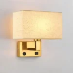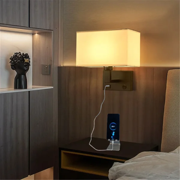 Arandela Cabeceira Cama Cúpula Tecido USB com interruptor