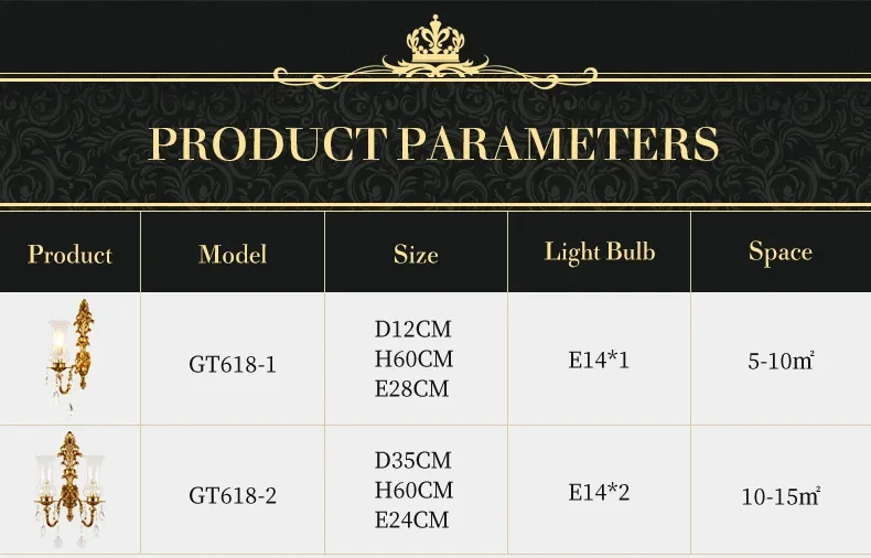 Arandela Clássica Dourado Modelo Lustre Parede