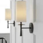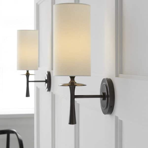 Luminária de parede, arandela design americano clássico, de alumínio e cúpula de tecido bege