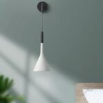 A luminária arandela cone vem em diversas cores, incluindo preto, céu azul, dourado, cinza, verde, rosa, vermelho, branco e amarelo, permitindo que você escolha a opção que mais combina com seu ambiente. O acabamento é pintado e o tipo de instalação é montado na parede. A luminária possui apenas uma fonte de luz, mas é capaz de iluminar até 5m².