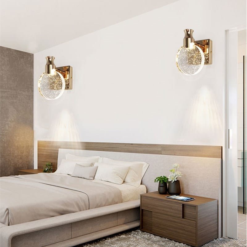 Luminária arandela circulo de vidro efeito bolha de ar e luz de led