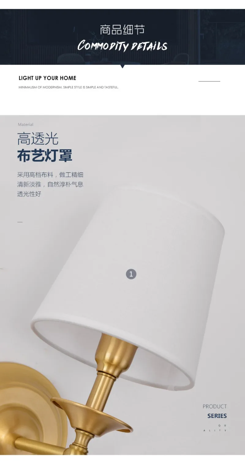 Arandela Design Americano Dourada Com Cúpula Tecido Branco