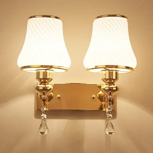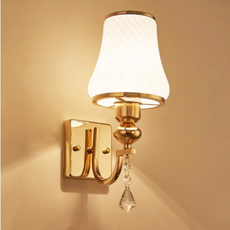Arandela Dourada Com Cúpula De Vidro Branco Leitoso