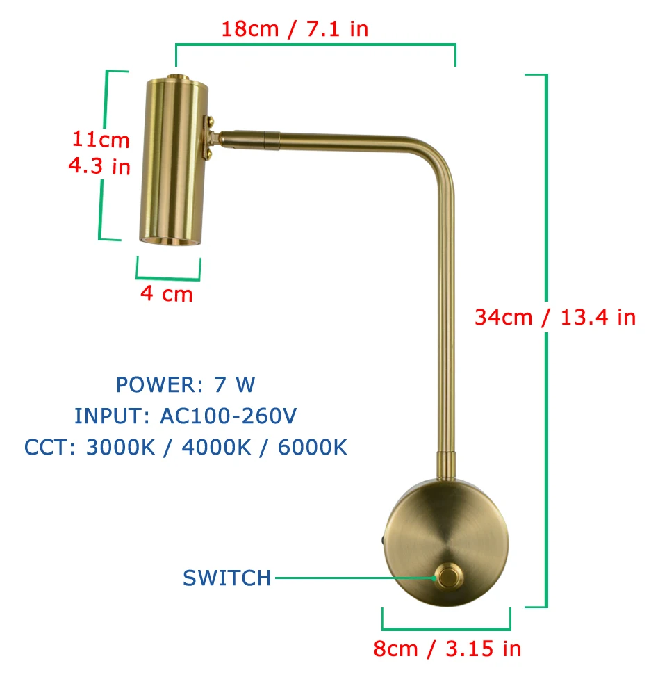 Arandela Dourada LED 7W Para Leitura Cabeceira Cama Modelo 2024/2025