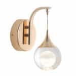 luminária de parede moderna, arandela, gota de vidro e metal dourado