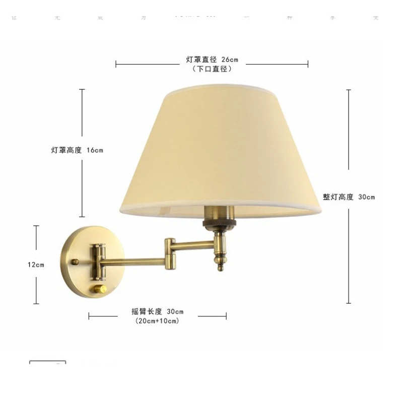 Arandela Haste Flexível Cúpula Cônica Tecido Plissado