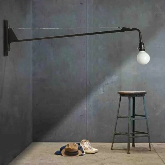 Primordialmente, uma Arandela industrial retro minimalista com haste longa usada de várias maneiras para criar um ambiente elegante e sofisticado em sua casa ou escritório. Então, aqui estão algumas ideias de como usar essa arandela: