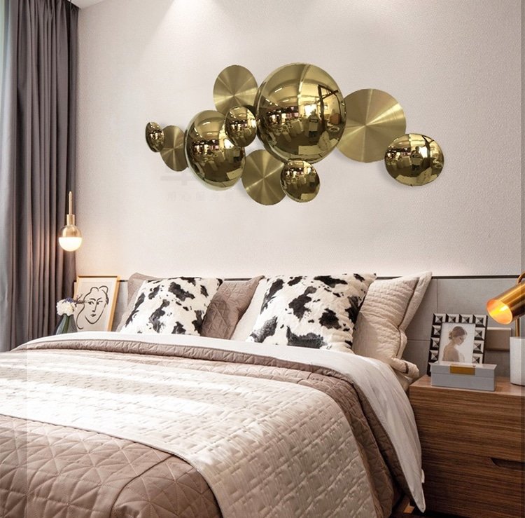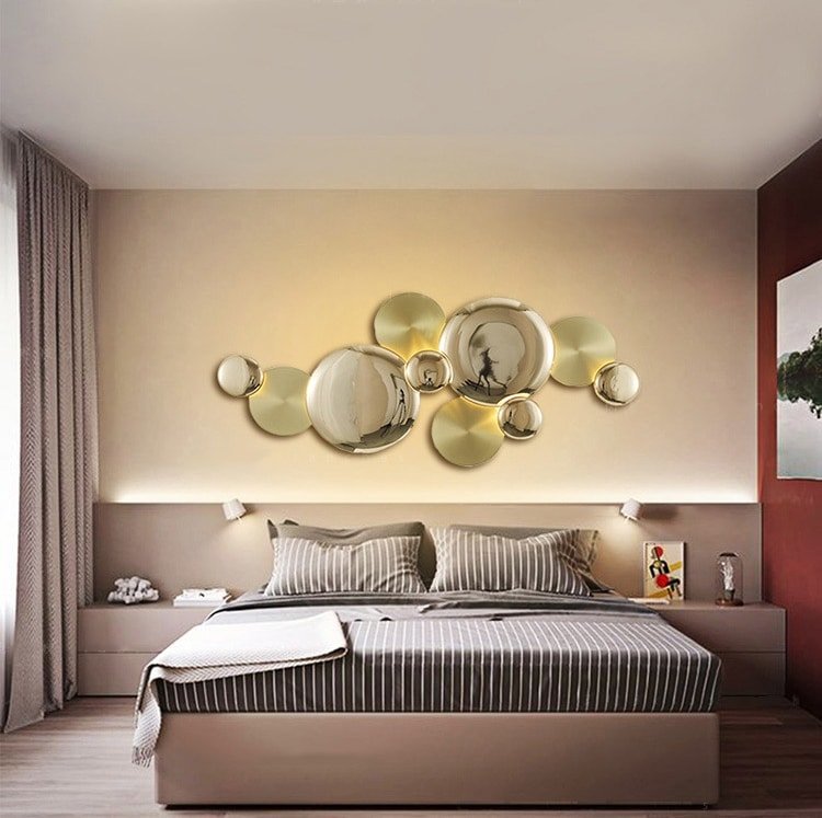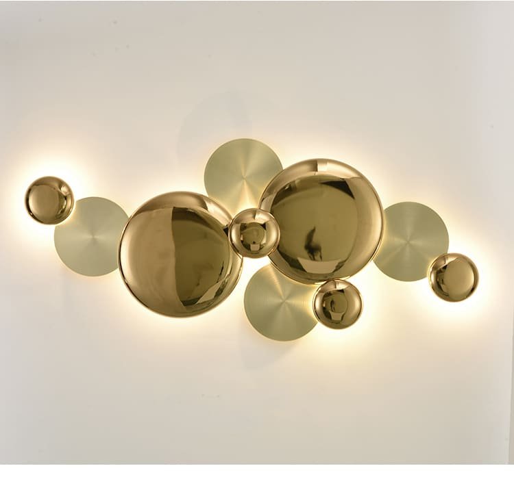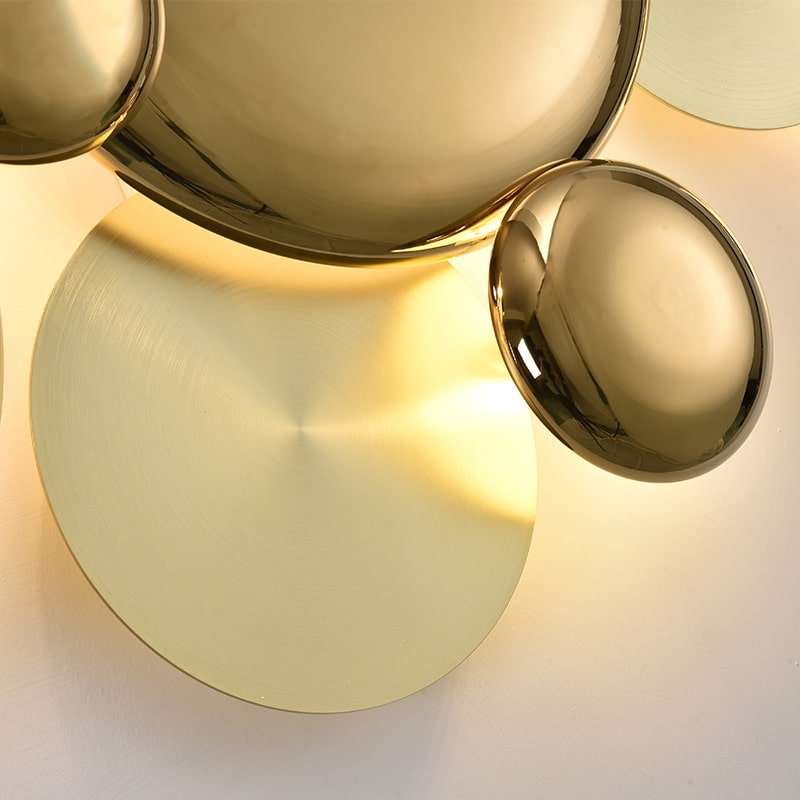 Arandela escultura círculo metal dourado fosco e polido com luz de led facho indireto