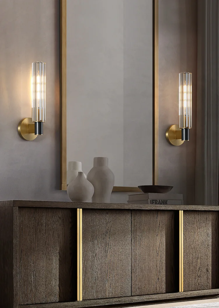 Arandela Luxo Cilindro Vidro Metal Dourado e Preto