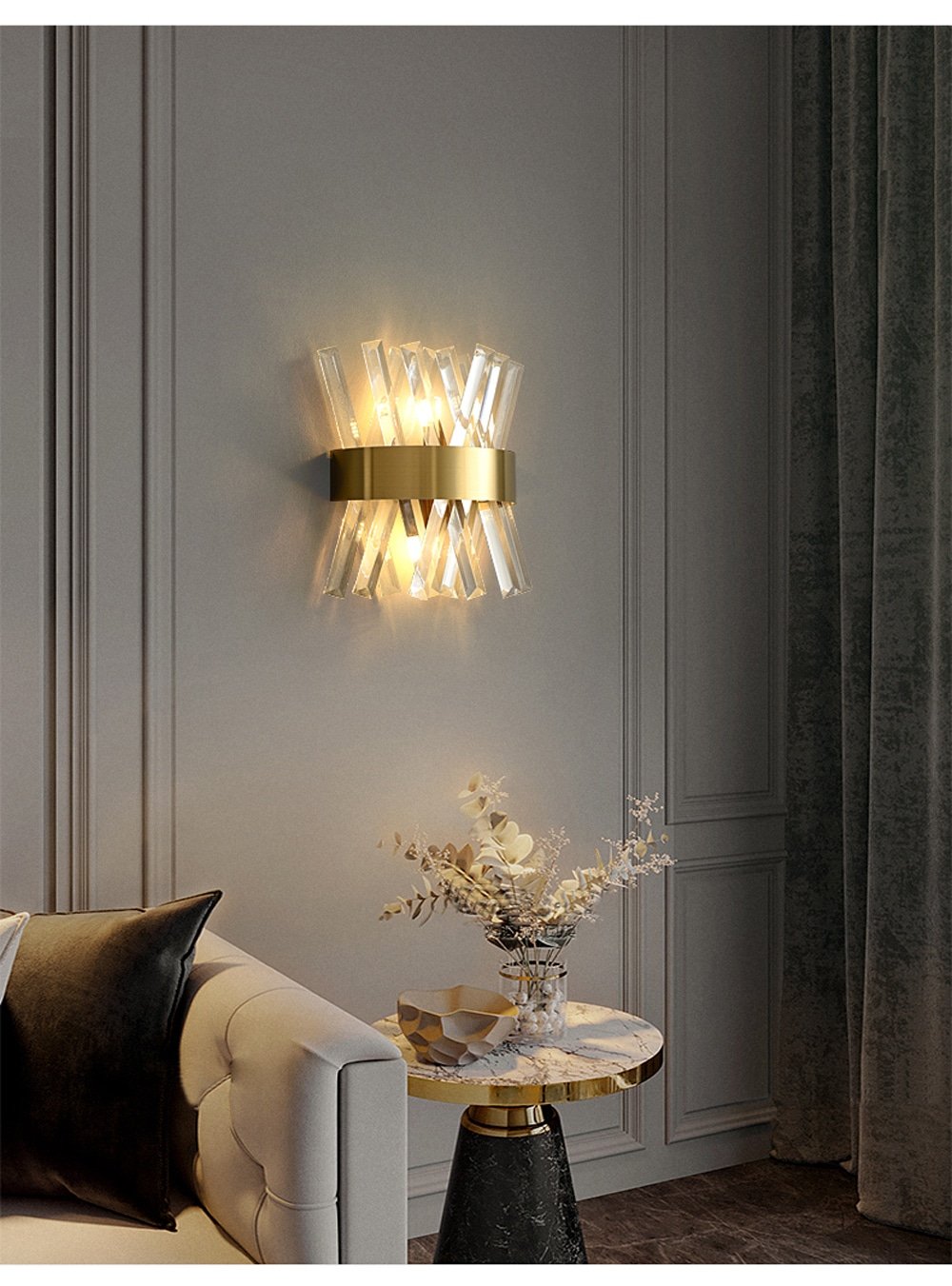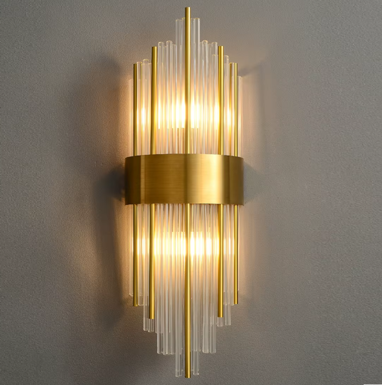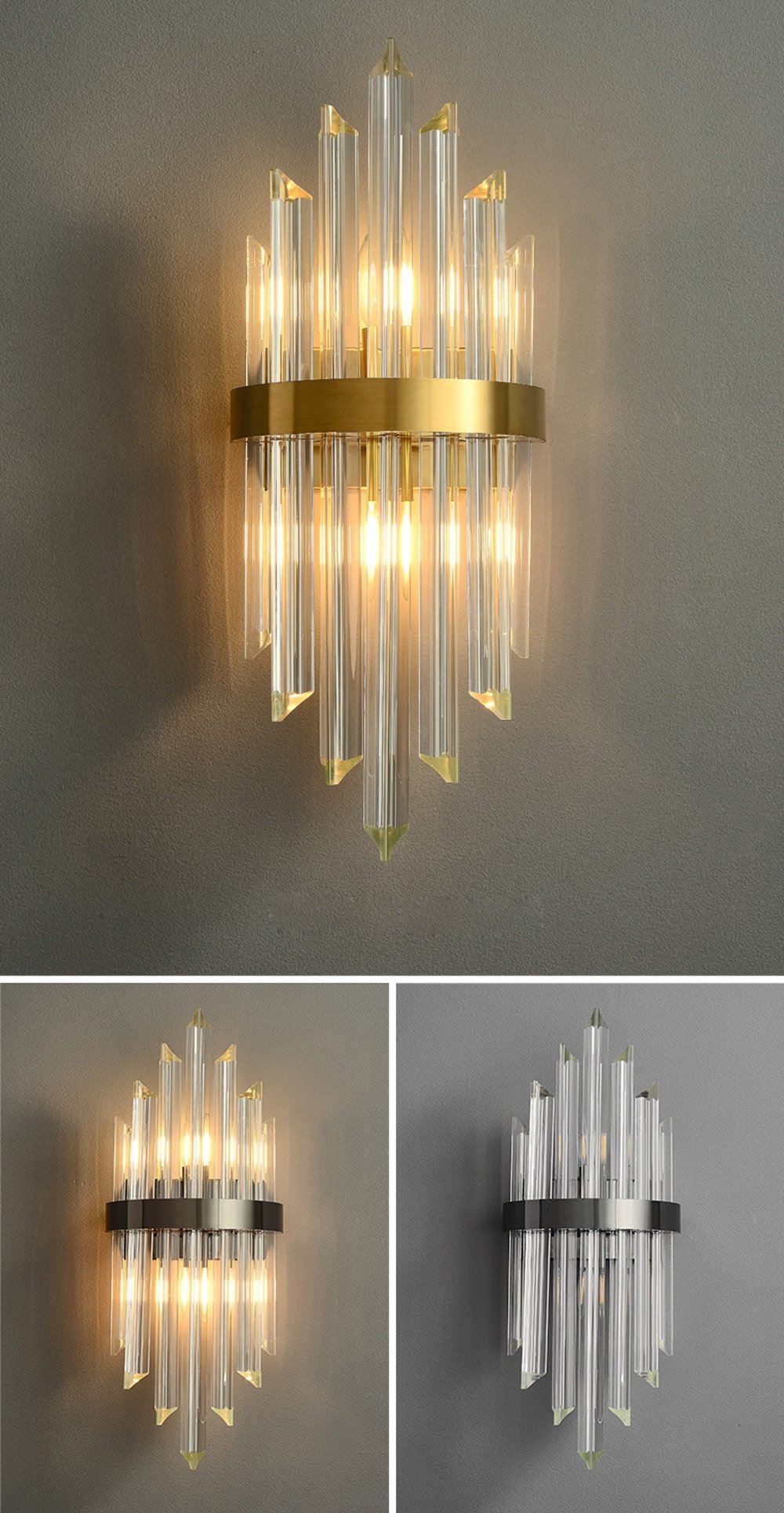 Arandela de metal dourado ou cromado e vidro ou cristal k9 transparente