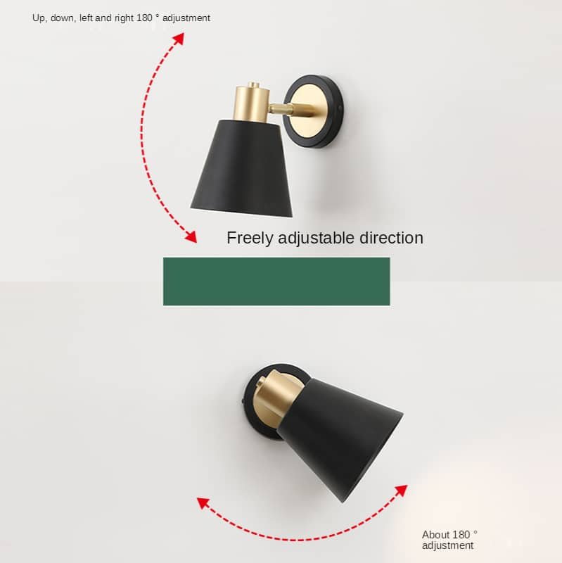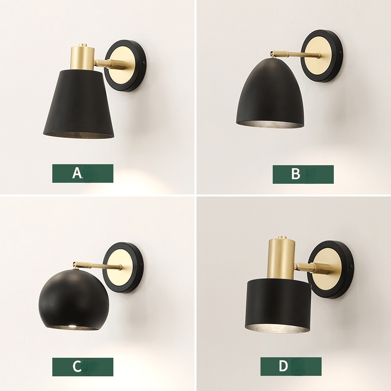 Luminária parede (arandela), de ferro e alumínio corpo dourado e cúpula preta ajustável