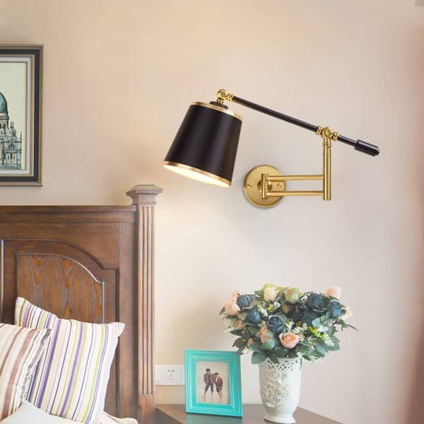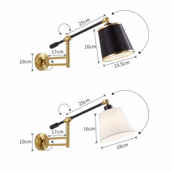 Luminária de parede articulada/ajustável moderna com cúpula de tecido