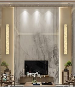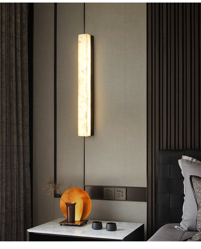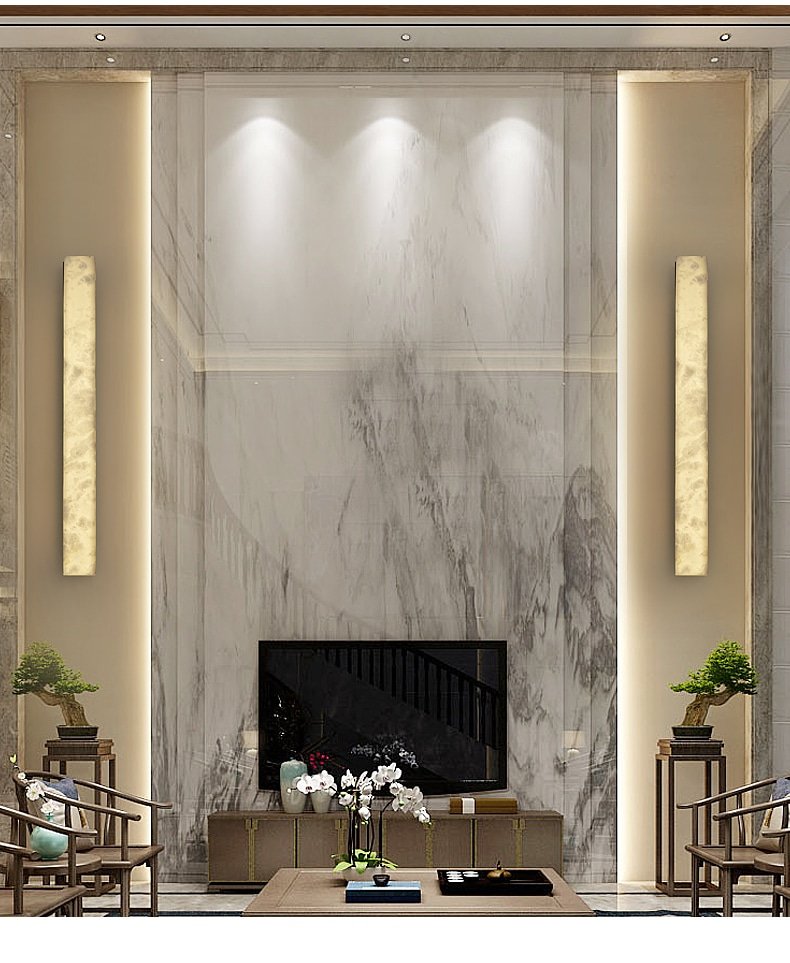 Luminária de parede retangular acabamento padrão mármore estilo chinês