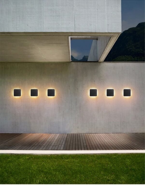 Arandela quadrada/redonda de alumínio preto com luz de led para jardins, varandas e sacadas