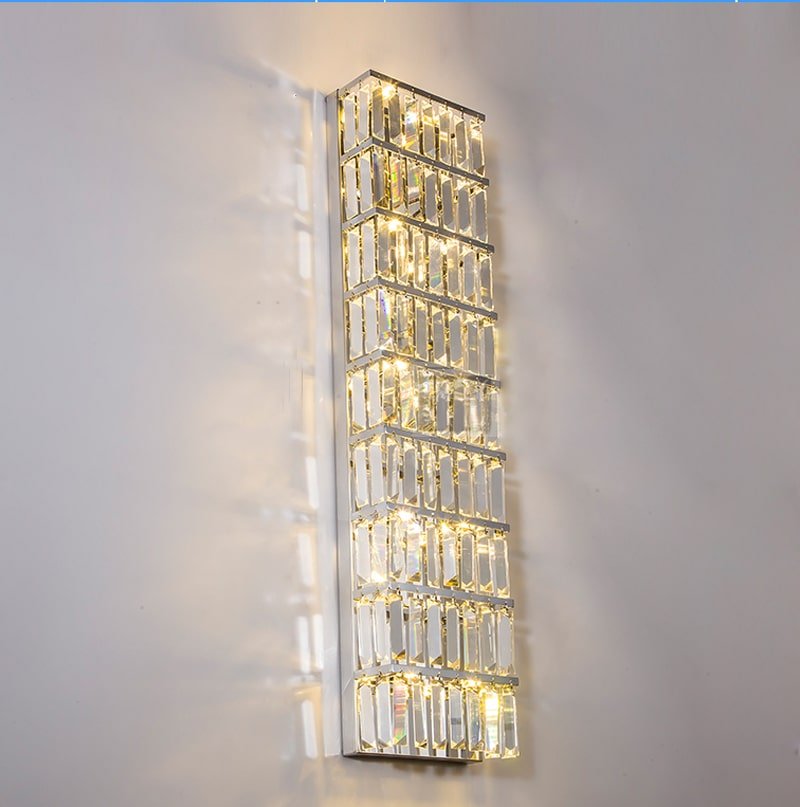 Arandela de parede retangular minimalista de cristal K9 translúcido e metal cromado