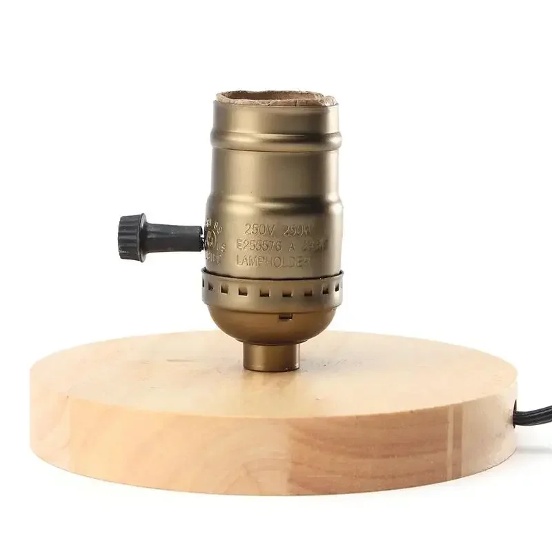 Base Redonda De Madeira Com Encaixe Para Lâmpada Soquete E27